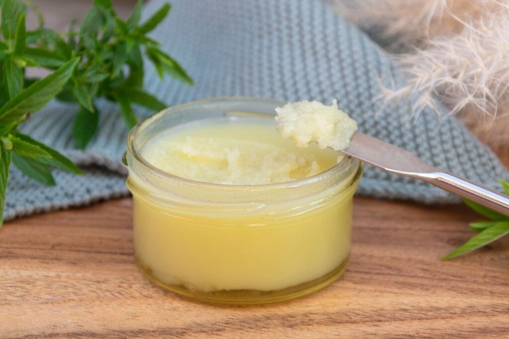 - Fülle den noch warmen Balsam in dein vorbereitetes Tiegelchen ab und lass es (gerne im Kühlschrank) auskühlen und aushärten.