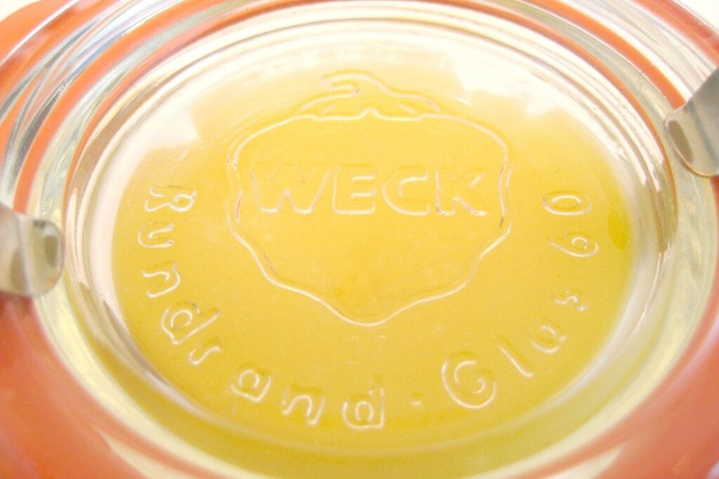 Das Bienenwachs dient hier als Scheinemulgator und verbindet unsere Wasserphase (das Glycerin) mit der Ölphase (den restlichen Zutaten).