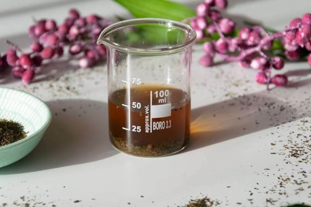 - Vermenge die Xanthan-Glycerit-Mischung mit dem noch warmen Tee und rühre es ggf. mit deinem Mini-Mixer oder Emulgierstab durch.