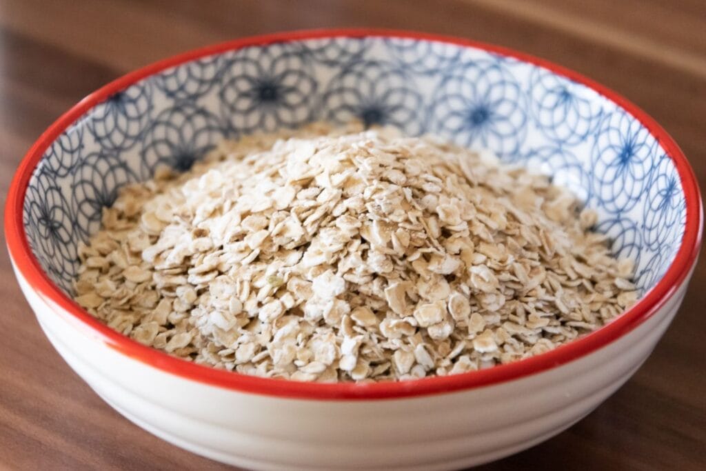 Im ersten Schritt besorgst du dir Vollkorn-Haferflocken.