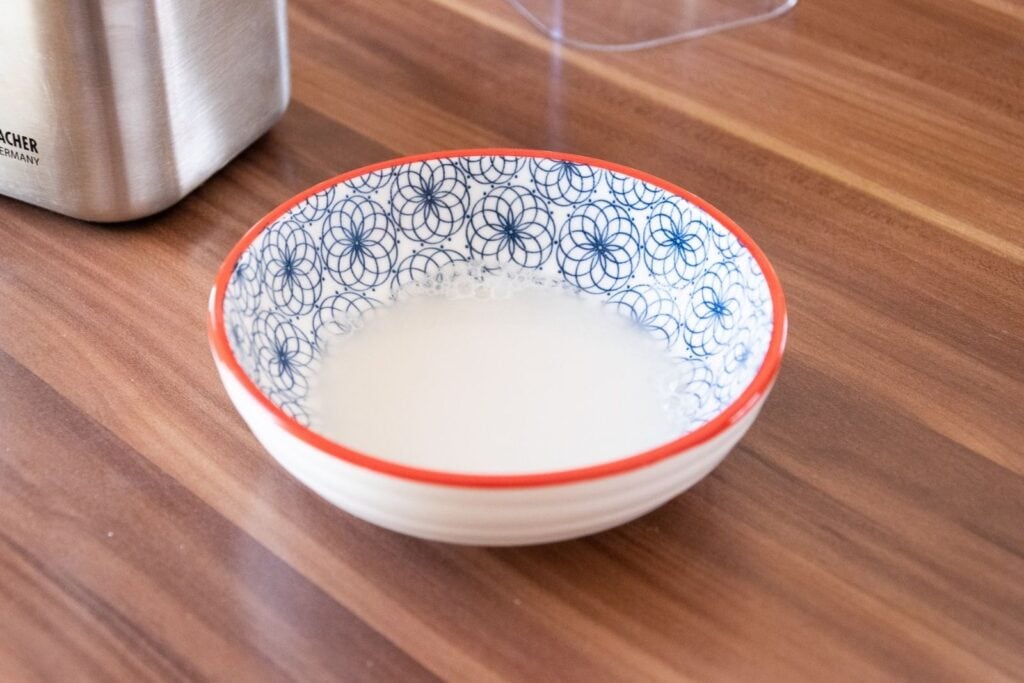 Wird und bleibt das Wasser milchig, ist der Mahlgrad fein genug und du hast erfolgreich kolloidalen Hafer hergestellt.
