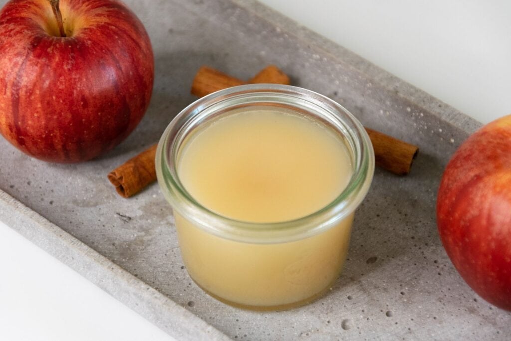 Die Reste aus dem Öl kannst du zum Beispiel mit etwas Zucker, Zimt und ggf. einem Schuss Wasser in ein tolles Apfelmus verarbeiten!