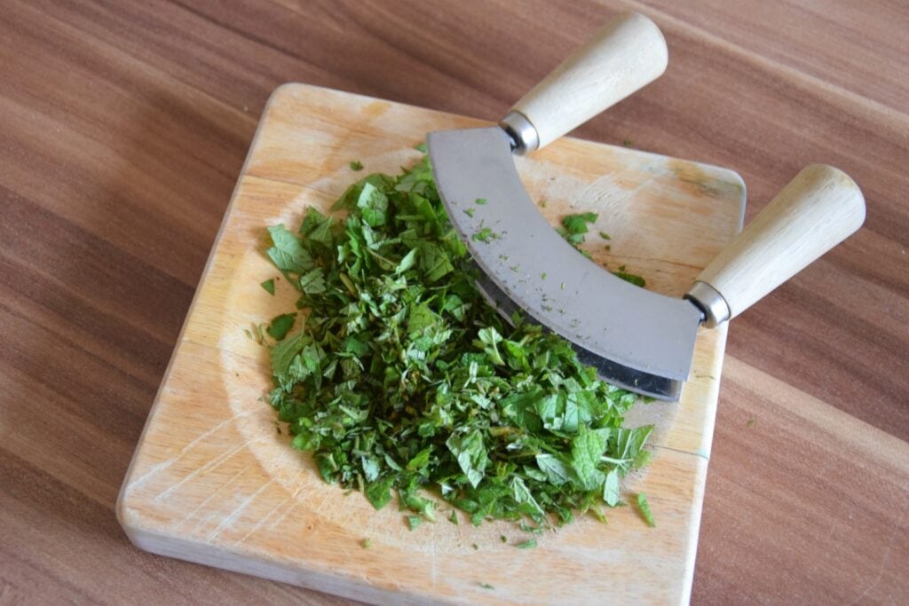 Um die Tinktur herzustellen, schneidest oder reißt du die frischen Pflanzenteile in kleine Stücke. Achte hierbei darauf, dass du nur gesundes Pflanzenmaterial verwendest.