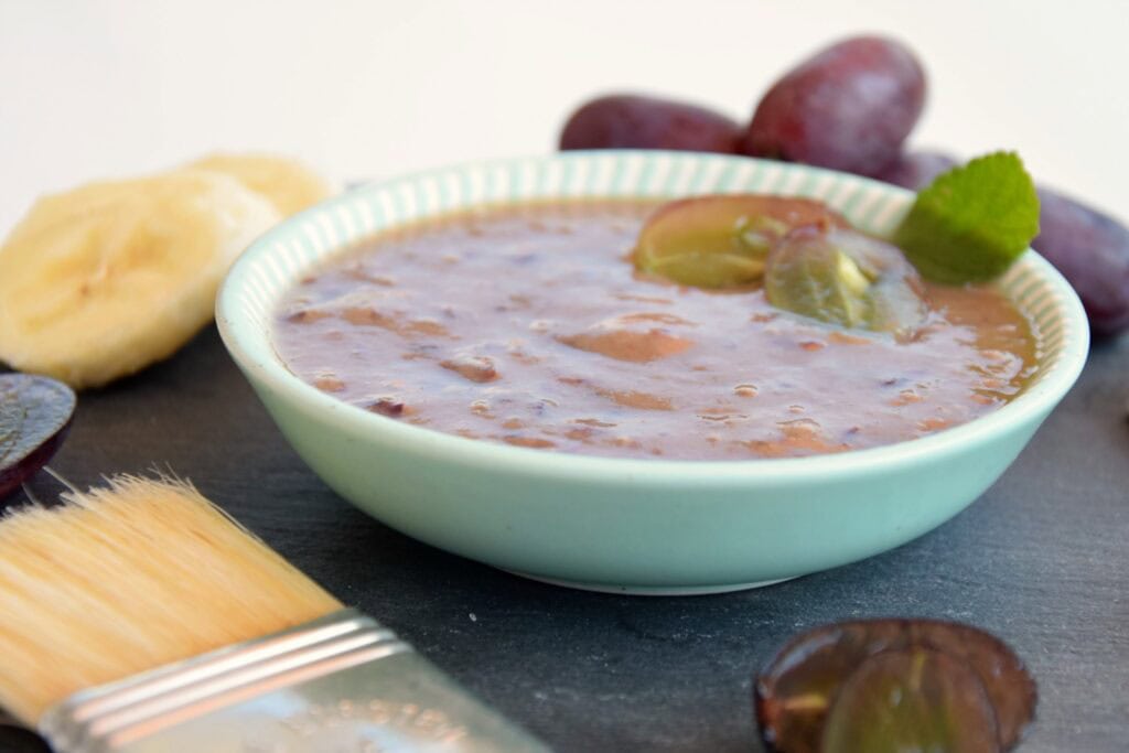 Außerdem brauchen wir die Bananen in dieser Maske für die Festigkeit, Trauben pur wären nämlich viel zu flüssig als Maske!