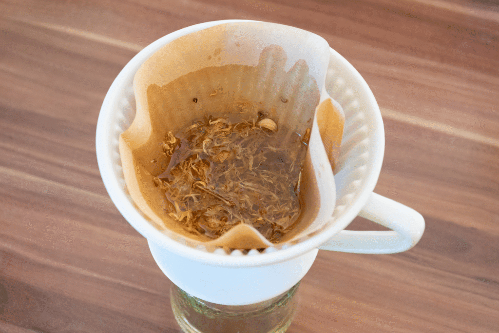 - Nachdem die Blüten im Öl ausgezogen wurden, filterst du die Mischung durch ein feines Sieb oder einen Papier-Kaffeefilter ab. Wenn das Öl noch warm ist, geht das Filtern schneller.